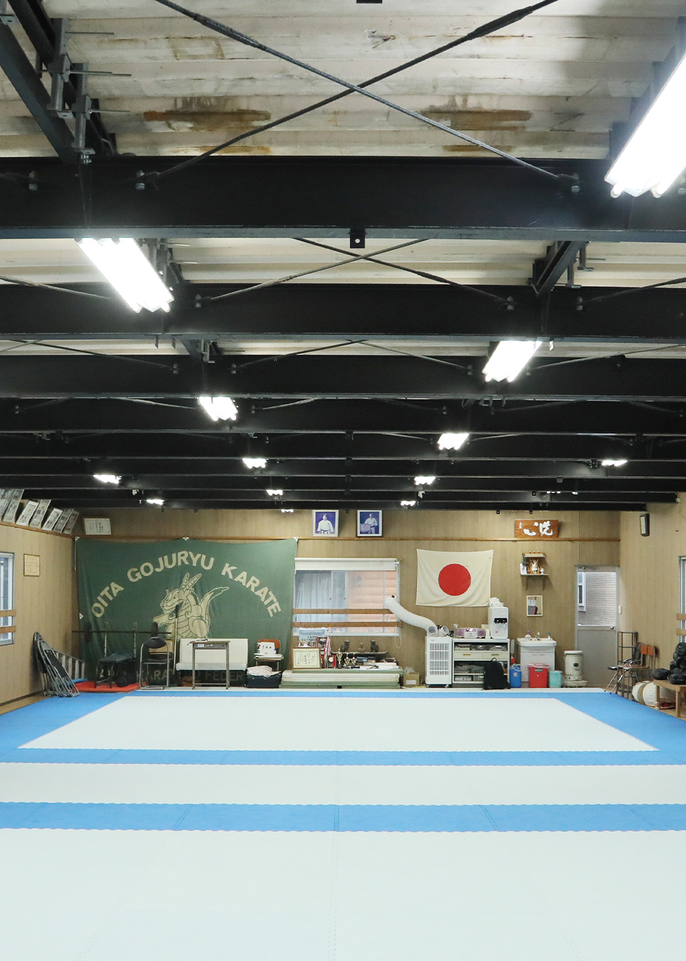 2面の広々とした道場に加え、合宿所や炊事場を備えた本格的な施設を完備しています。20台以上が駐車できる駐車場もあり、安心して通える環境です。